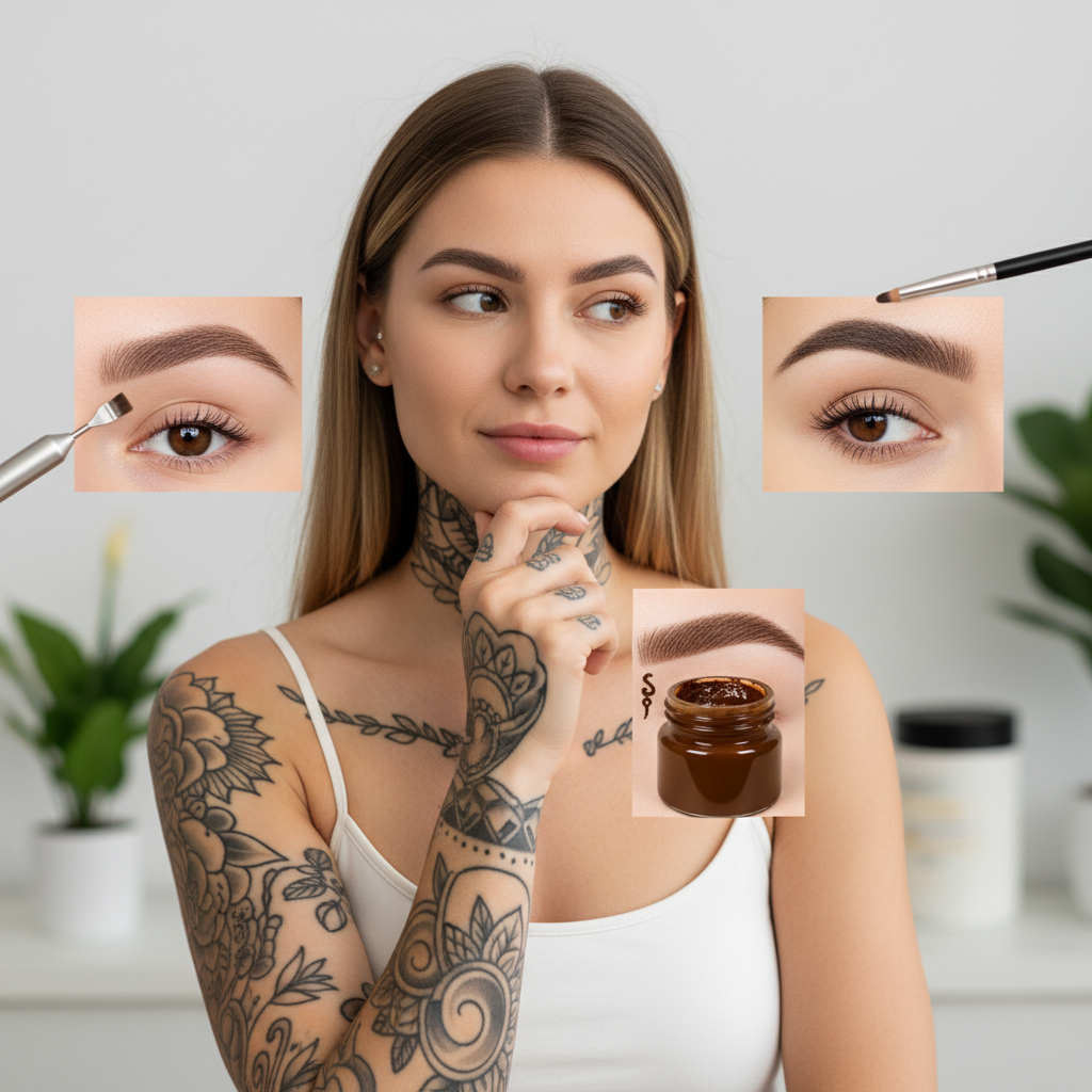 Ja przez lata przeszłam wszystko: od cienkich kresek (tak, to były czasy) po totalny natural vibe. Testowałam hennę, kredki, pomady i w końcu — microblading. Każda metoda ma swoje plusy i minusy, i żadna nie jest idealna dla wszystkich.