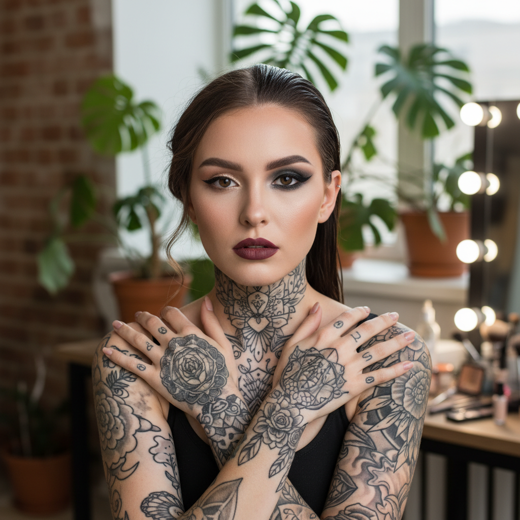 Przyznaj — ile razy stałaś przed lustrem z pędzlem w dłoni, zastanawiając się, czy dziś iść w stronę delikatnej mgiełki na powiekach, czy może od razu walić czarną kreskę jak z koncertu rockowego? Jeśli twoje ciało zdobią tatuaże, to make-up staje się czymś więcej niż codziennym rytuałem — to część całej historii, którą o sobie opowiadasz. Bo tatuaż i makijaż to trochę jak duet: czasem grają w duecie balladę, a czasem niemal metalowy riff.