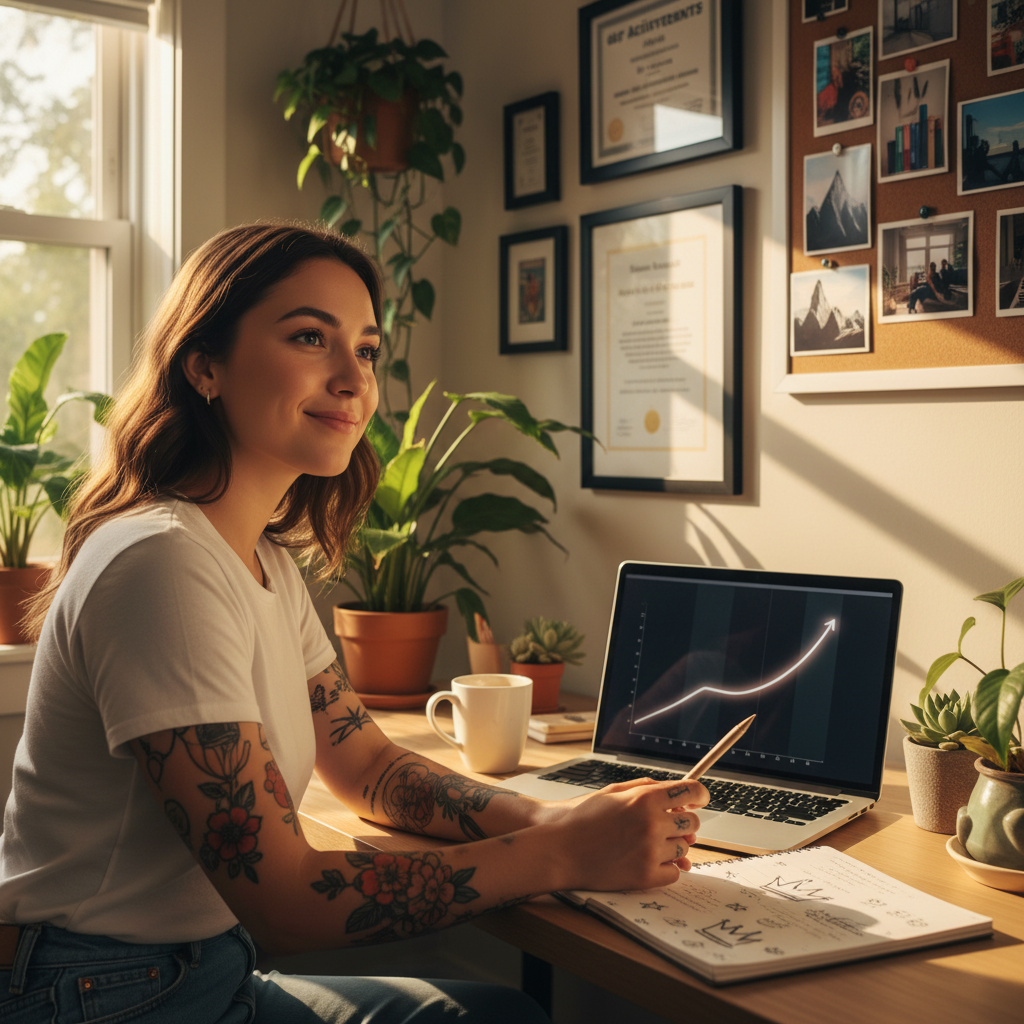 Nie musisz czekać na Oscara. Zakończyłaś trudne spotkanie, zrobiłaś piękny tatuaż, oddałaś projekt na czas – to też sukcesy! Świętuj je. Zrób sobie kawę, kup mały prezent, przypominaj sobie, że każdy krok się liczy. Małe rytuały pomagają budować nawyk dostrzegania wartości w tym, co już masz.