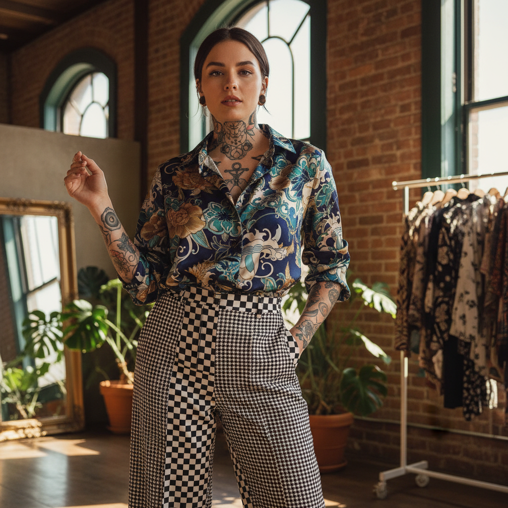 Wzorzyste ubrania i tatuaże to jak duet w zespole – mogą stworzyć genialną harmonię albo skończyć jak kłótnia na próbie. Wszystko zależy od tonacji. Jeśli Twój tatuaż jest mocno graficzny (czarne linie, geometrii sporo, styl minimalistyczny), to ubrania z subtelnym, drobnym printem mogą świetnie go podkreślić, zamiast się z nim kłócić.